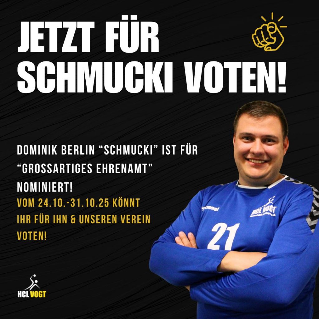 Schmuckis jahrelanges, ehrenamtliches Trainer-Engagement und alles, was er für den HCL Vogt geleistet hat, soll honoriert werden! Stimmt bis einschließlich Freitag, den 31.10. jeden Tag einmal auf der Homepage der… Eure Stimme für Schmucki! weiterlesen - Neue Trainingszeiten – der Winterplan 2025/2026 steht fest!