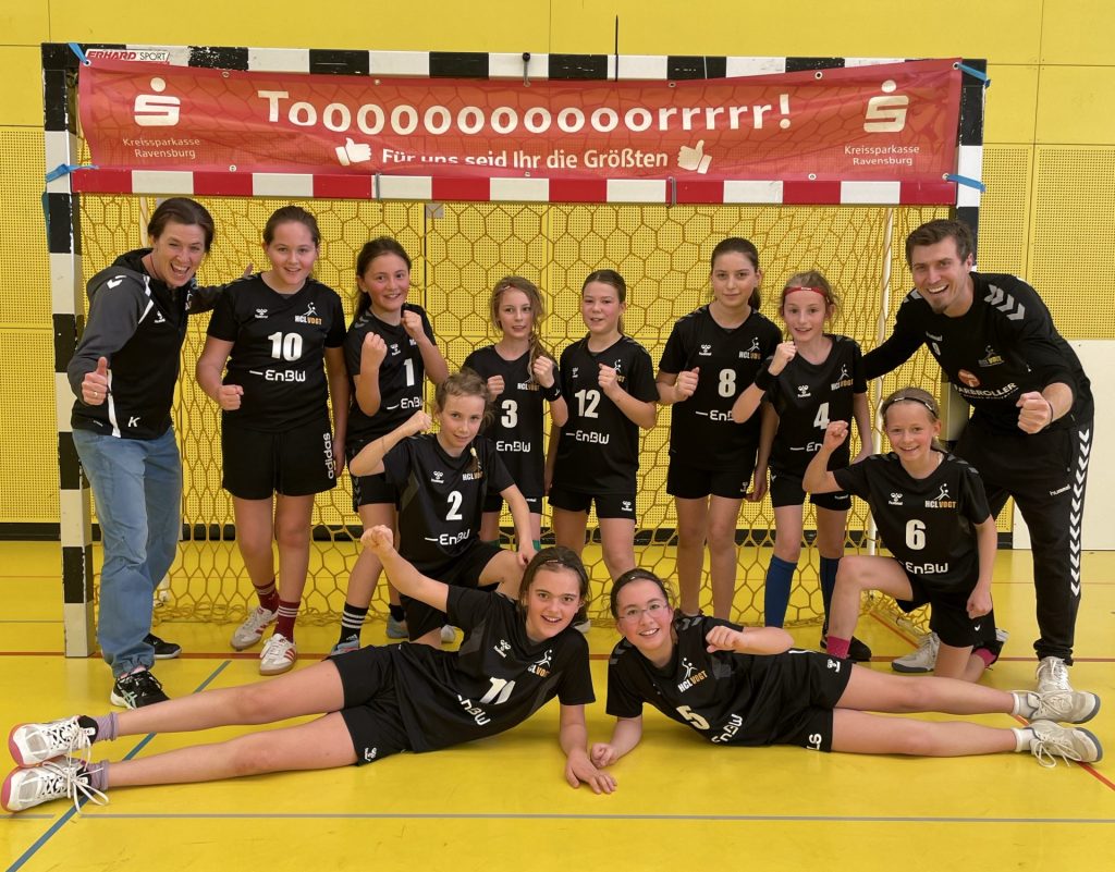 Im anschließenden Spiel gegen die MTG Wangen zeigte sich von Beginn an ein deutlich verbessertes Auftreten. Die Mädels verteidigten aufmerksam, setzten die besprochenen Punkte hervorragend um und gestalteten ihr Angriffsspiel deutlich breiter, wodurch viele schöne und leichte Tore erzielt werden konnten. Das zweite – und spielerisch noch überzeugendere – Spiel ging somit verdient mit 17:10 an die gut aufgelegte Mannschaft aus Vogt. Den umjubelten Schlusstreffer erzielte Mara Bernhard in der letzten Spielsekunde.
